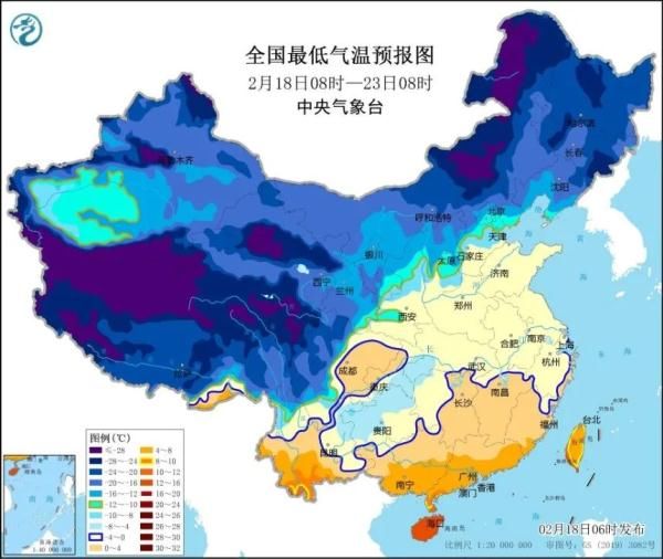 预计18日至22日,贵州、湖南中南部、江西南部、云南东部、广西、广东、福建西南部等地的日平均气温较历史同期偏低5℃左右,其中贵州南部、湖南南部、江西南部、广西大部、广东大部等地的部分地区偏低可达7℃。另外,受冷空气影响,内蒙古中部日平均气温也较历史同期偏低5℃,部分地区偏低7℃。