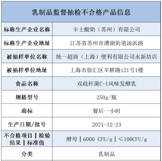 然而,高端酸奶品牌卡士酸奶近期却在产品质量上“塌房”了。上海市市场监督管理局4月6日通报了卡士酸奶旗下“餐后一小时”抽检不合格、酵母含量被检测出超标60倍的问题。