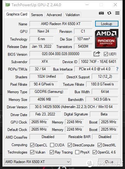 低温低功耗的主流选择,XFX讯景RX6500XT黑狼游戏显(2)