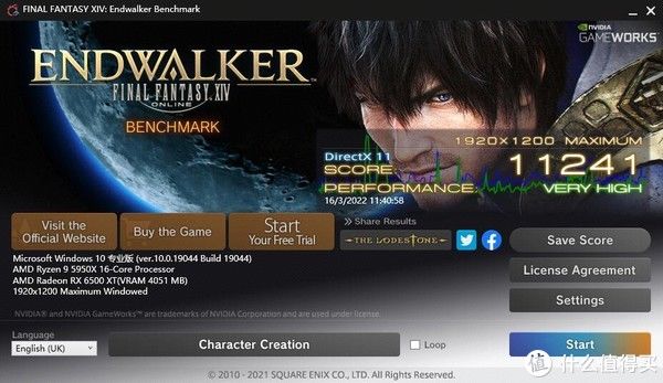 FF14 6.0官方跑分程序中,RX6500XT黑狼的成绩表现还算凑合,在maximum设定+1080P分辨率实现平均77帧的成绩,总分。