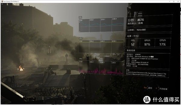 又到了全境封锁2测试,游戏版本依旧是TU14+复刻第二季,考虑到本身显卡性能水平,设置方面是DX12+预设极高/高/中画质三种;RX6500XT黑狼在极高画质下总分4676,平均52帧;高画质下7165分,平均80帧;中画质下9332,平均104帧;管家建议以高画质水平来体验游戏,保持画面和帧数的平衡。